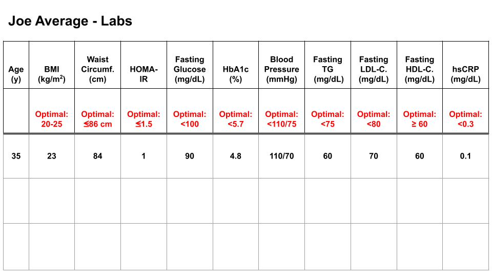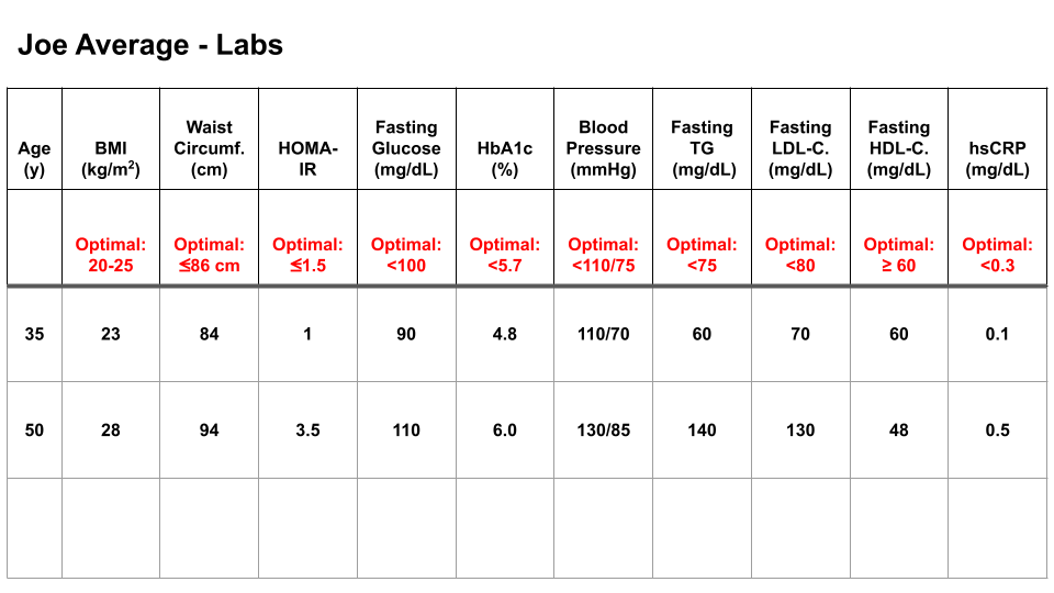 我将通过观察普通人从 35 岁到 50 岁再到 65 岁的变化来说明胰岛素抵抗综合征的出现。将观察体检化验结果,考虑体内发生了什么变化,而这些变化往往会导致几乎所有成年人在衰老过程中都发生非常相似的变化。